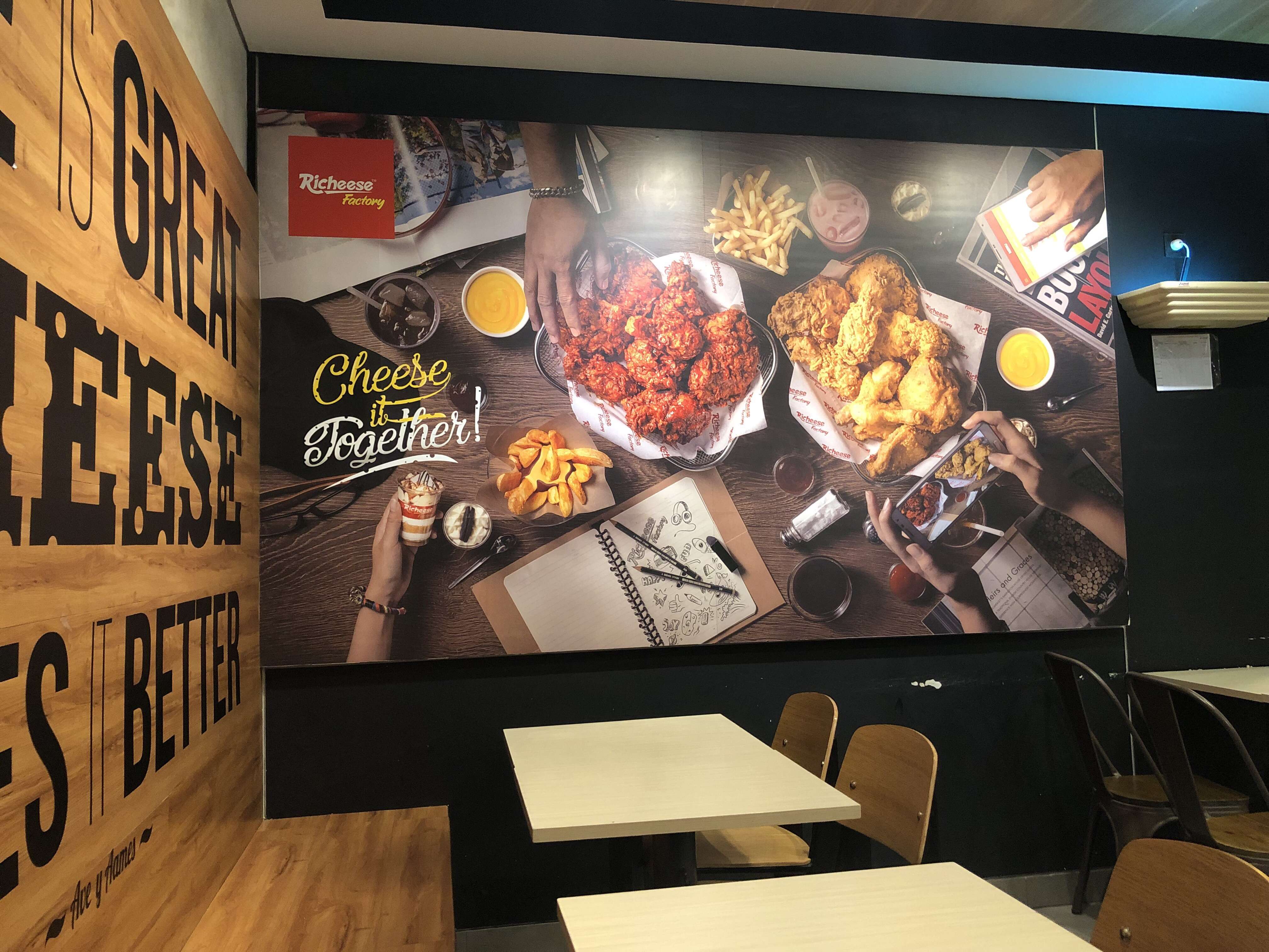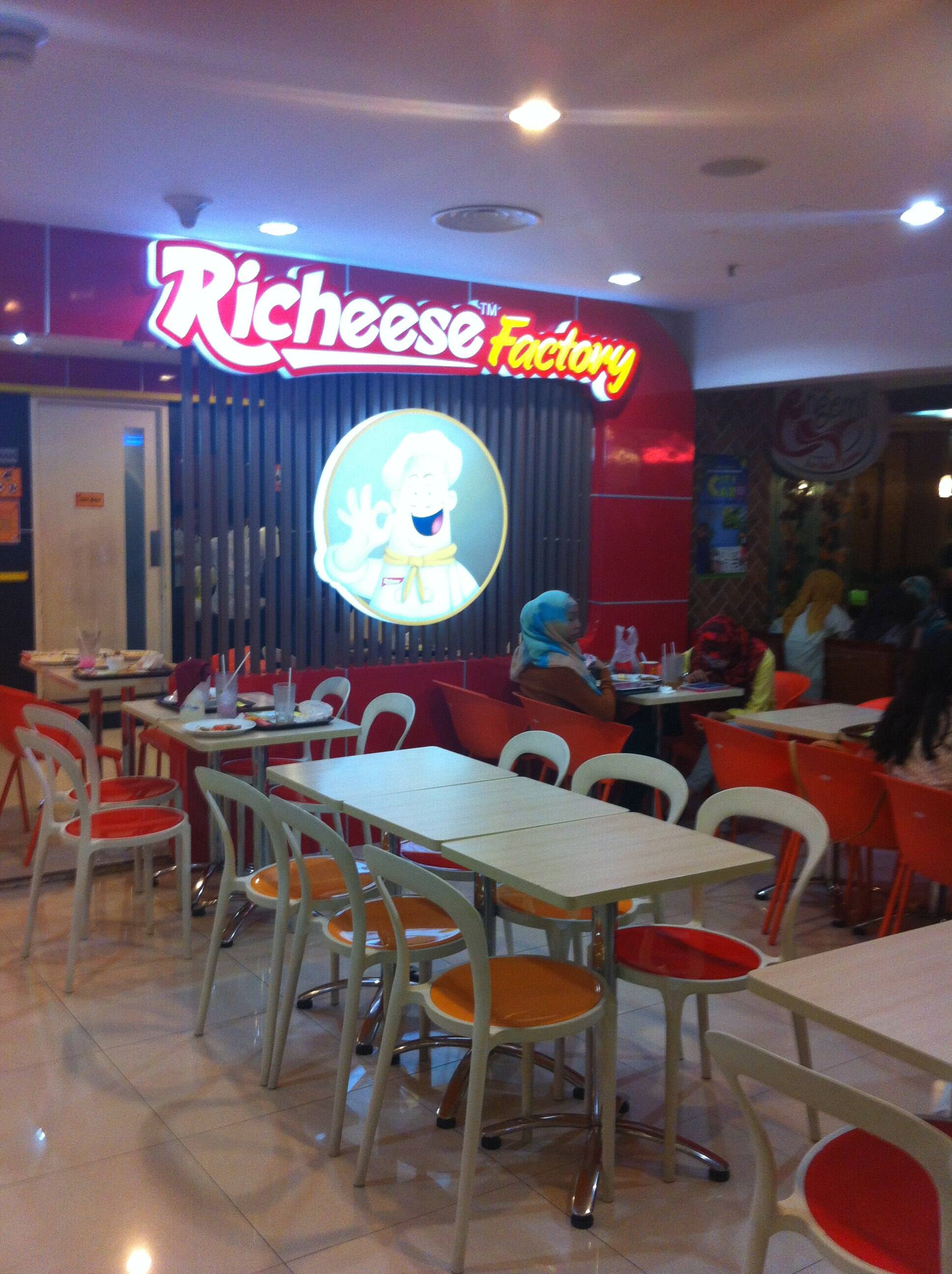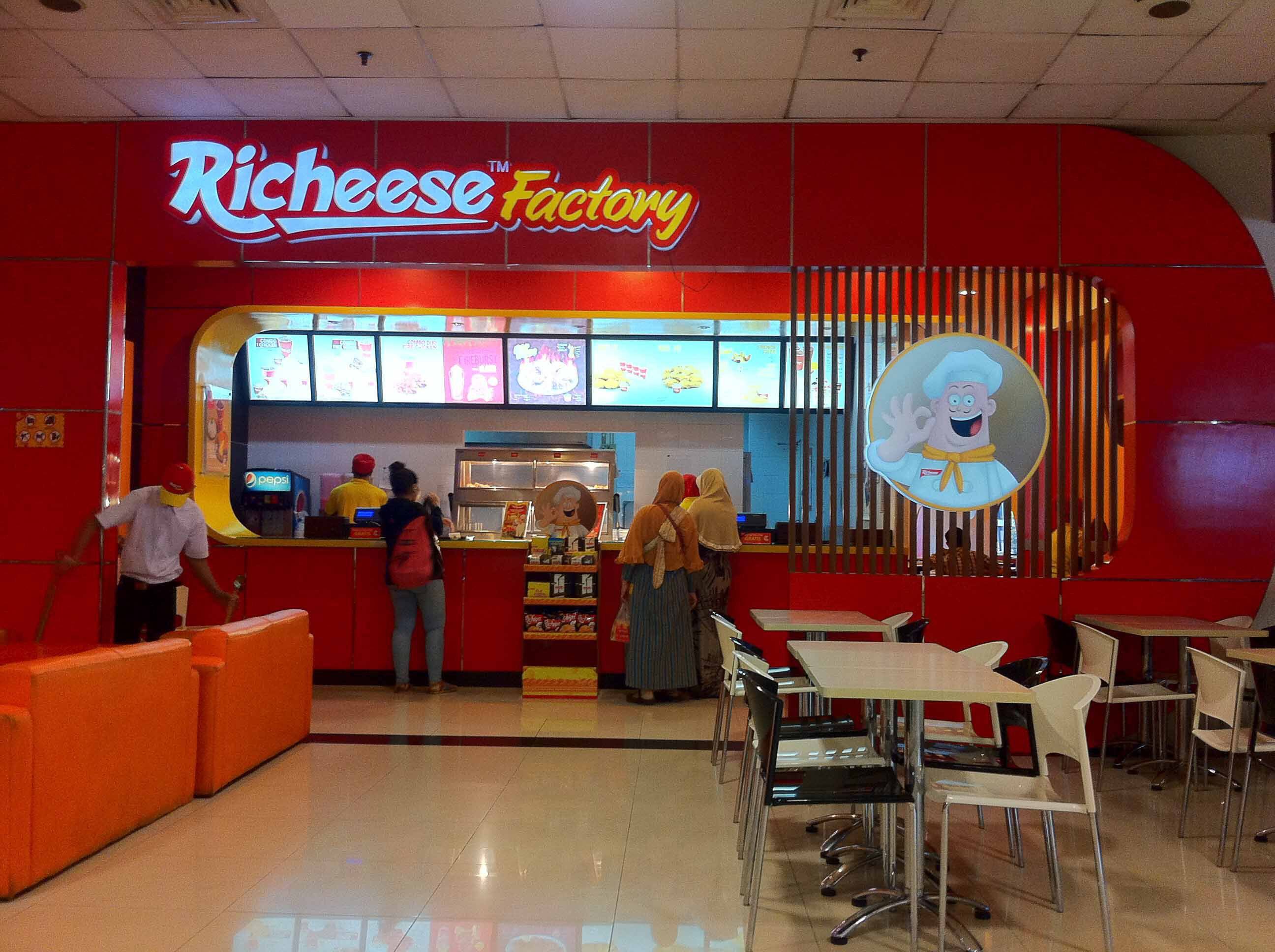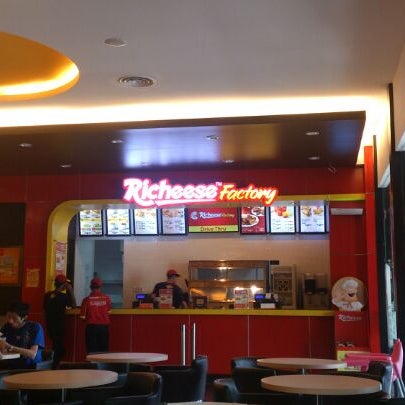 Namun di masa pandemi ini tetap patuhi protokol kesehatan dan sebaiknya bungkus untuk makan di rumah. Jenis masakan makanan atau nama restoran Opsional. Richeese Factory adalah sebuah jaringan rumah makan siap saji asal Indonesia dengan menu utama ayam goreng dan keju yang dimiliki oleh PT Richeese Kuliner Indonesia.